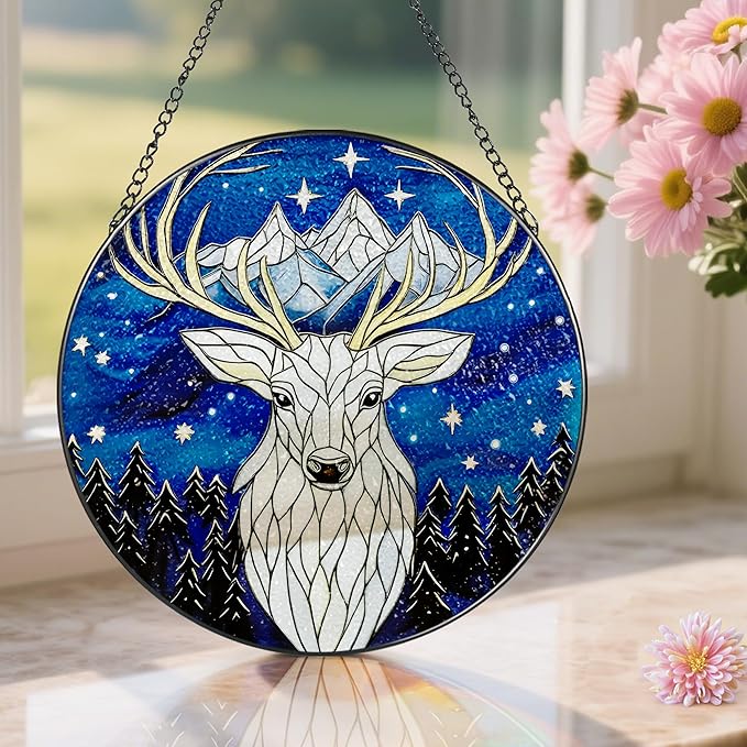 - ☀WHERE LIGHT MEETS ART: Our stained glass suncatcher have a unique blend of semi-transparency and crystal-like radiance. As sunlight passes through the stained glass, its colorful patterns refract into rainbow-hued, dazzling light and shadow—infusing your home with an artistic ambiance and exquisite decorative style.