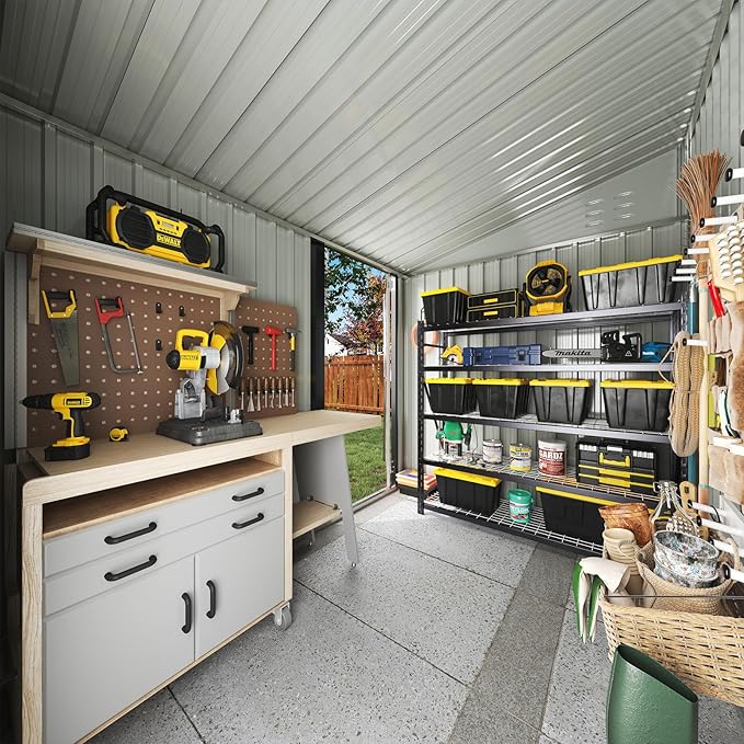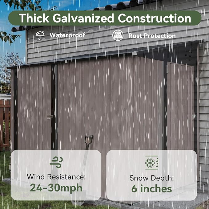 - Durable Storage Shed: Durable structure and thick galvanized steel, waterproof, which make it easy to cope with all kinds of bad weather and have a long service life. Thick metal supporting roof and stacked wallboard make the whole structure more stable.