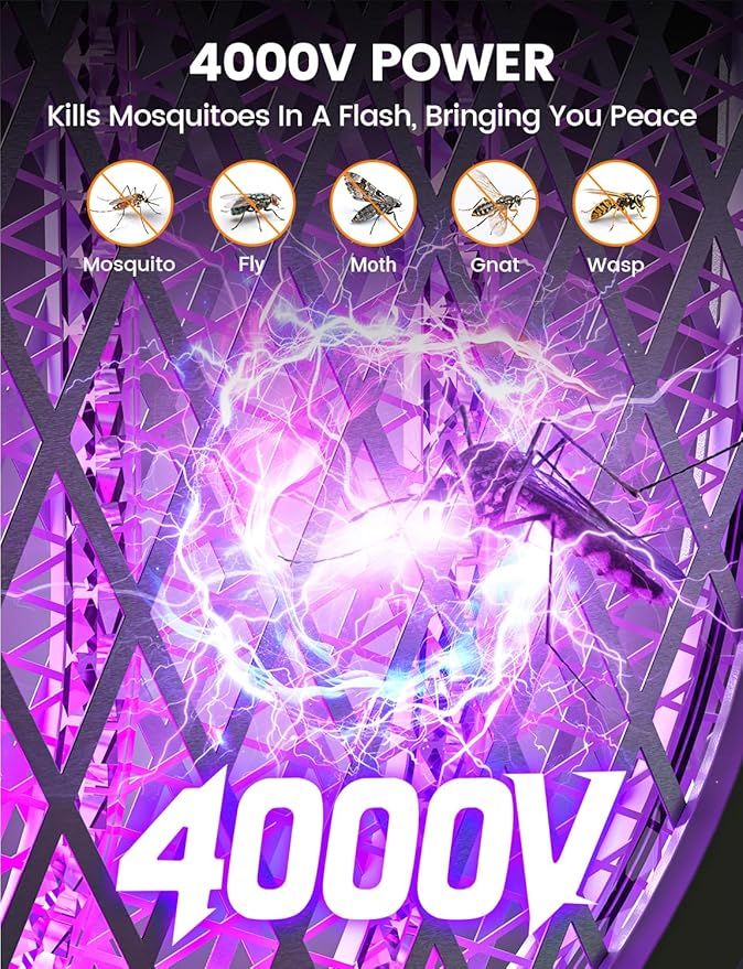 - 4000-Volt High-Voltage Mosquito Elimination: This Electric Fly Swatter, when fully charged, can release a powerful 4000 volts to instantly kill mosquitoes, flies, and other small pests. Larger flying insects may require multiple hits for complete elimination. Made with high-quality conductive materials, it ensures rapid discharge with every hit, making mosquito elimination easier and more efficient.