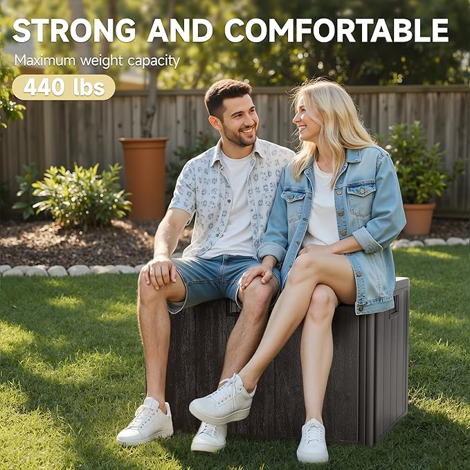 - VERSATILE STORAGE SOLUTION: Perfect for tidying up patios, pool areas, decks, and gardens. It securely stores outdoor cushions, gardening tools, seasonal items, and kids’ toys. The weatherproof design works great indoors and out.