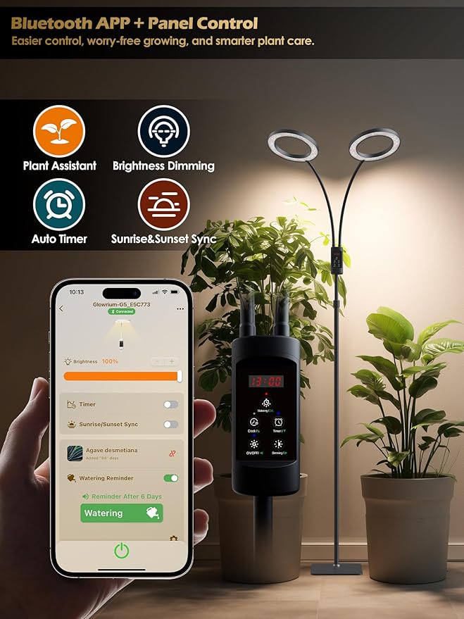 - 【Personalized Timer & Sunrise&Sunset Sync】Set two separate lighting schedules per day to match your routine, or sync with local sunrise and sunset times for a more natural light cycle—perfect for mimicking nature and supporting healthy plant growth.