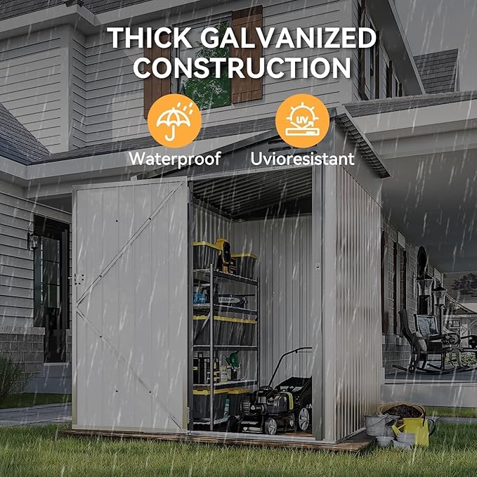 - Weather-Resistant Construction: Built with premium galvanized steel and powder-coated color panels, this shed offers superior rust protection and long-lasting durability. The reinforced base design and robust structural engineering deliver exceptional stability, ensuring reliable performance even in harsh weather conditions.