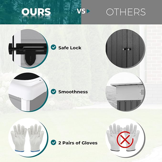 - VENTILATION PANELS AND BRIGHT WINDOW DESIGN: YOPTO Heavy-Duty Sheds Unit includes built-in ventilation panels to assist with airflow inside. A functional window allows natural light into the Waterproof Tool Sheds space, creating a brighter and more user-friendly interior environment
