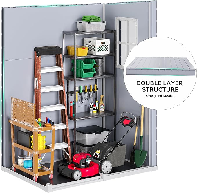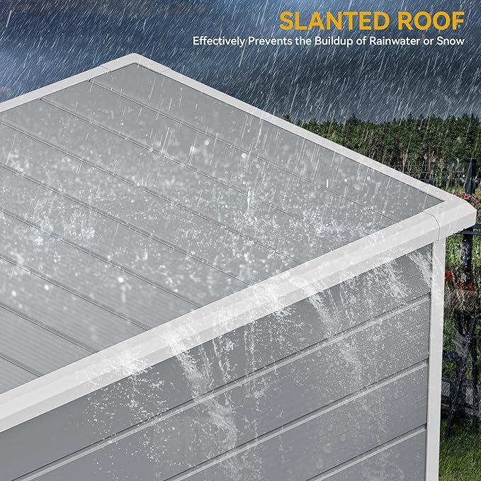 - All-weather Protection: Crafted with 12 MM Extruded Polystyrene (XPS) and a sloped roof, this resin shed shrugs off rain, sun, wind, and snow. UV-protected and waterproof, built to stand strong through every season