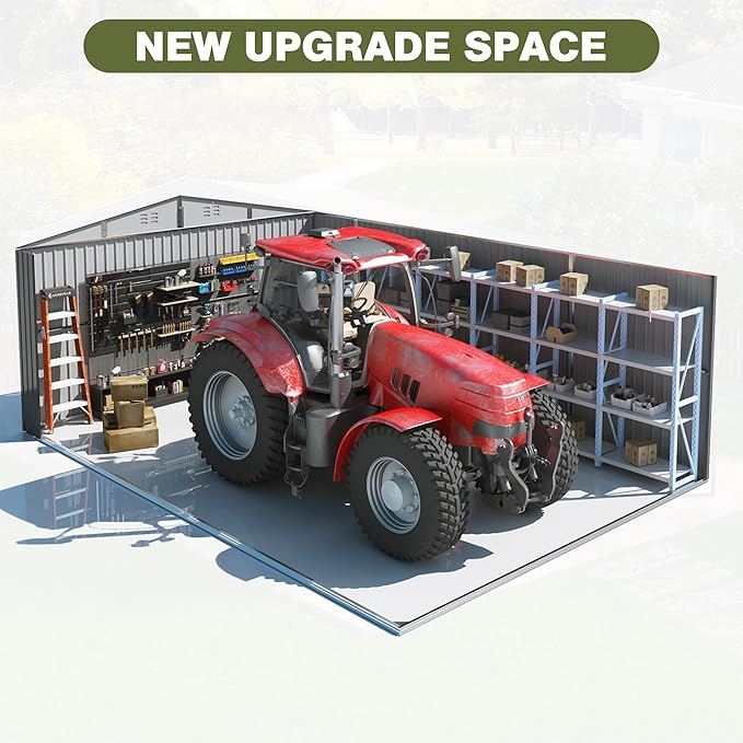- VERSATILE USAGE: More than a metal shed, effortlessly transforms into a workshop, equipment storage room, or compact garage to meet diverse storage and project needs.