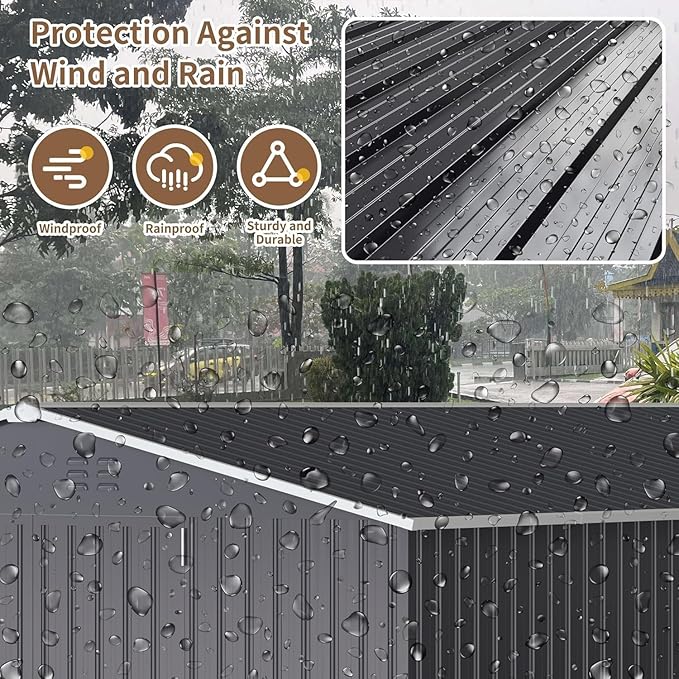 - DURABLE & SECURE: The shed features a strong steel tube frame and rust-resistant galvanized steel panels for weather-resistant durability, lockable doors provide reliable security for your valuables.