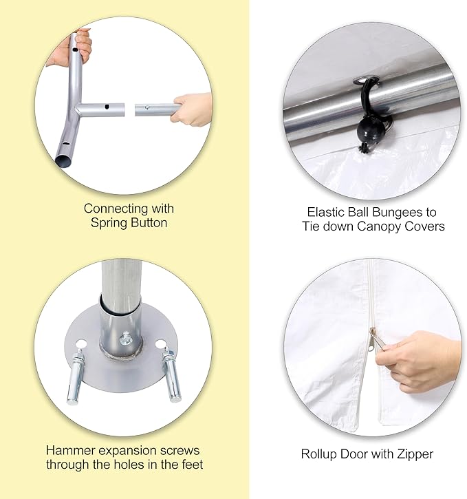 - Quick & Easy Installation: Quick and easy assembly is a highlight of our carport, requiring no special tools. With clear step-by-step instructions, two people can set up the portable garage in no time. Ensure safety by wearing gloves and handling all components carefully during installation.