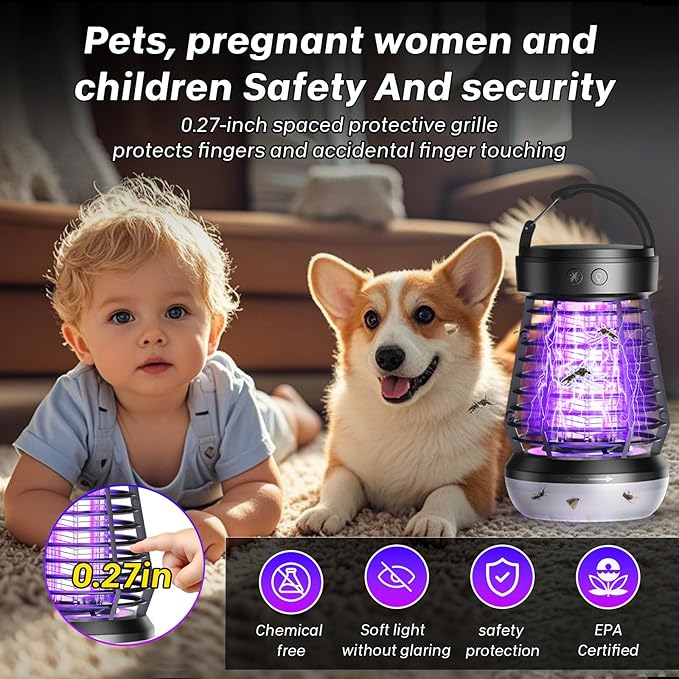 - 【Designed for Wilderness Camping Adventures】The Falala Mosquito Killer is a bug-zapping device crafted to elevate your outdoor experiences. With coverage of up to 1 acre, this bug zapper is ideal for wilderness camping. Featuring an extended battery life, this device is not only fast and highly effective at eliminating pests but also safe to use around children and pets.