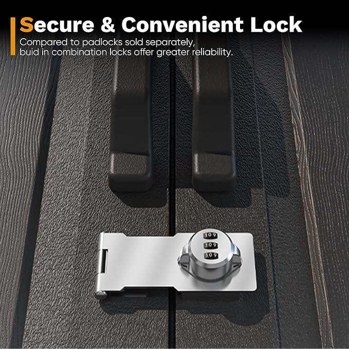 - KICK-IT Installation: Approximately 35% fewer screws are required, the wall of resin shed connected to the floor only needs to be aligned and installed by kicking with feet to complete the installation. Before installation, make sure the ground is level.