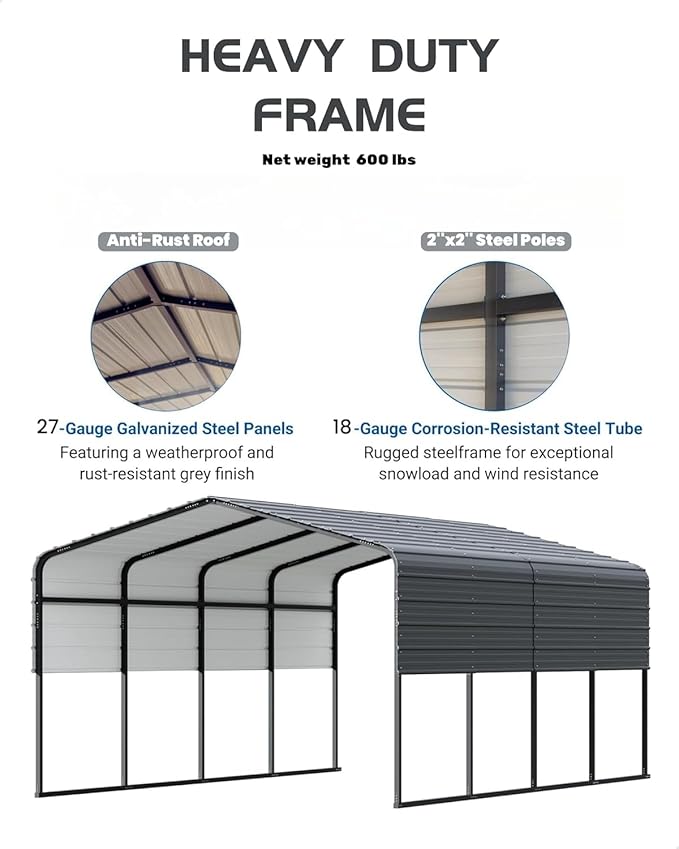 - 【Multifunctional Design】The outdoor metal carport with a heavy-duty galvanized canopy and garage car shelter provides plenty of space for vehicles and trucks. It can act as a carport canopy and a shelter for outdoor activities such as parties, weddings, and trade shows. The gray finish gives your backyard an elegant and stylish appearance. Customize your outdoor life now.