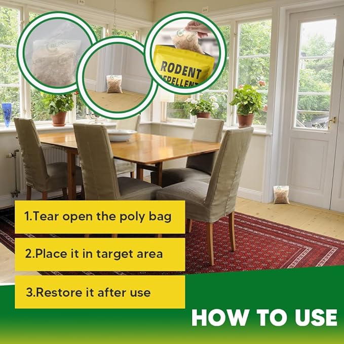 - Easy To Apply-Simply place the peppermint mice repellent in areas with rodent activity. The minty scent makes rodents uncomfortable, encouraging them to flee and stay away.