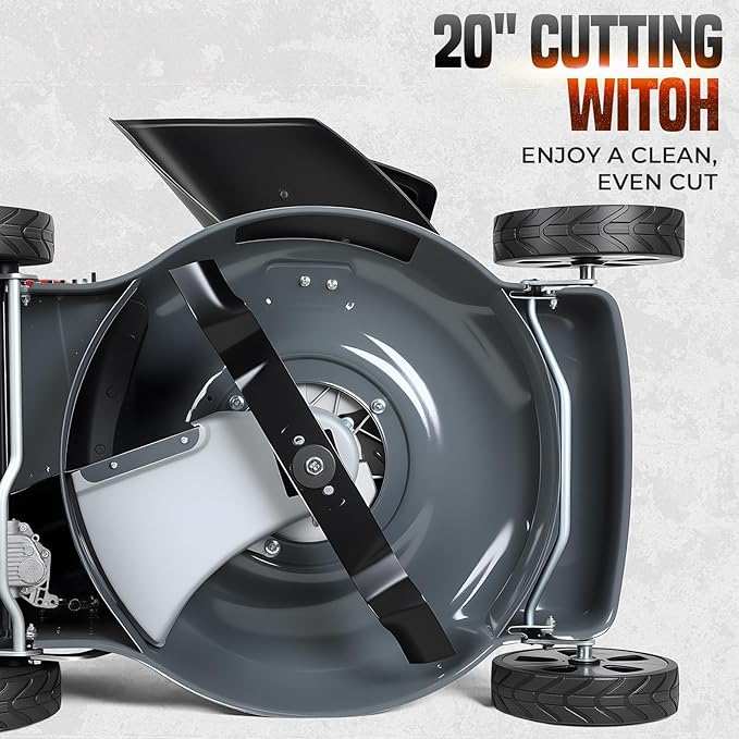 - 【⏱️ 𝗨𝘀𝗲𝗿-𝗙𝗿𝗶𝗲𝗻𝗱𝗹𝘆 𝗢𝗽𝗲𝗿𝗮𝘁𝗶𝗼𝗻 & 𝗦𝘁𝗼𝗿𝗮𝗴𝗲】 One-pull start system ignites instantly (no electric cords!). Folding handle + compact design (49"L) fits in standard car trunks for shipping. Safety Note: Anti-tip wheels and deck cleanout port prevent accidents