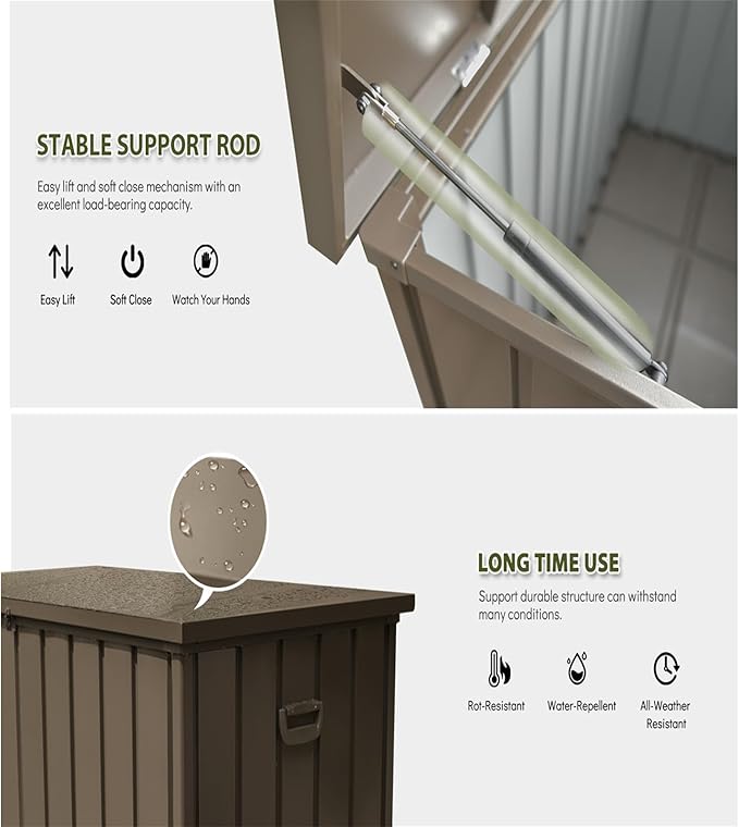- Super Practical Large Size: The Dimension is 54.33"L x 29.2"W x 33.1"H. With a 200-gallon capacity, your gardening supplies, pool accessories, seasonal patio cushions, or even packages at your door will all have a spot of their own.