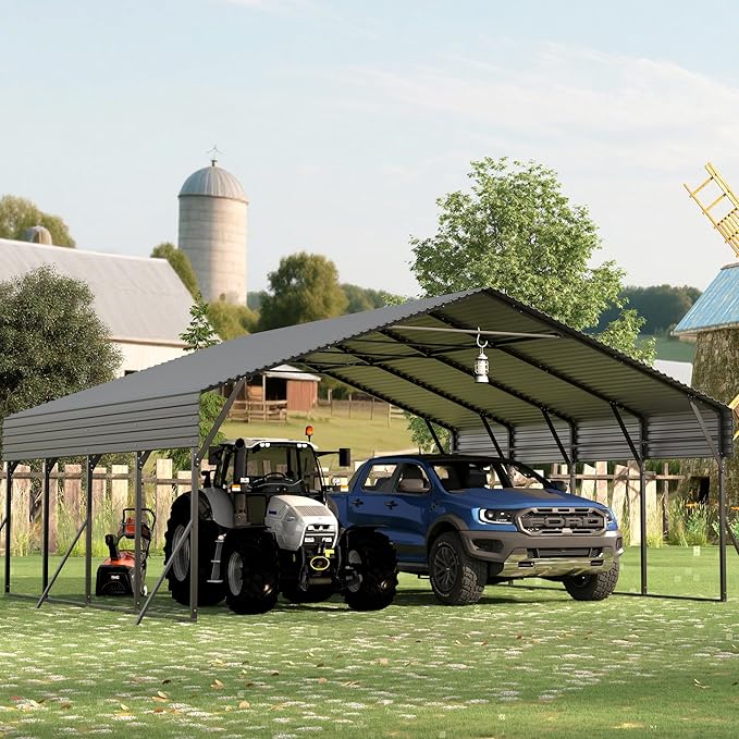 Carports 20x20 Heavy Duty,Metal Carport with Reinforced Structrure and Base,Outdoor Garage Car Shelter Frame for Pickup, Boat, Car and Tractors