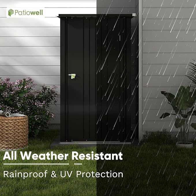 Patiolife 3 x 3 FT Metal Storage Shed, Small Patio Tool Shed with Sloping Roof & Lockable Door, Outdoor Garden Steel Shed for Backyard, Lawn, Easy-Assembly Black