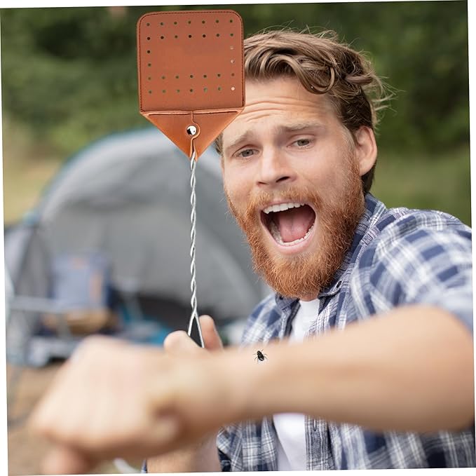 - Sturdy Insect Control Tool: Constructed with flexible PU leather and a reinforced iron wire handle, this fly swatter delivers reliable performance for both indoor and outdoor flying insect elimination. The materials withstand repeated use without losing effectiveness.