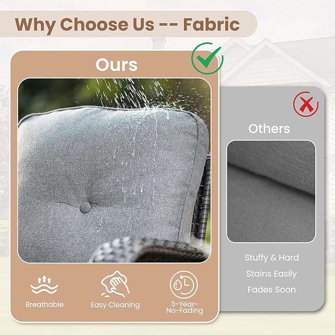 - All Weather & Durable: Selected anti-ageing treated thicken PE wicker rattan for UV resistant, wear resistant and all weatherproof. 3D strengthen and widen design for extended service life,twice service life as others
