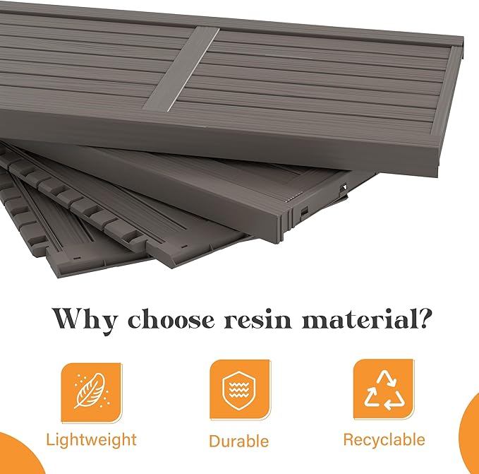 - Durable Material and Stable Structure: This shed is made from durable resin, It's engineered to resist water, UV rays, fading, rust, peeling, and warping, ensuring minimal maintenance for years.