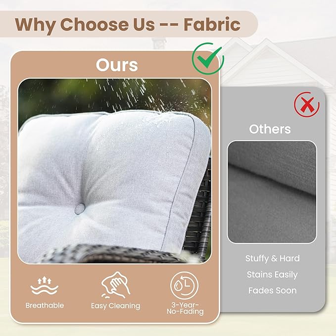 - All Weather & Durable: Selected anti-ageing treated thicken PE wicker rattan for UV resistant, wear resistant and all weatherproof. 3D strengthen and widen design for extended service life,twice service life as others