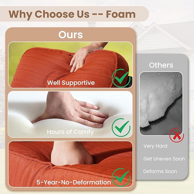 - Texture Woven Fabric: Cushions are covered by yarn dyed woven fabric,the yarns are dyed and UV treated before woven into fabric for out door fading resistant and water repellent. Looks and touches with high-end woven texture. No more worry about getting cheaply made thin print fabric. Detachable & washable