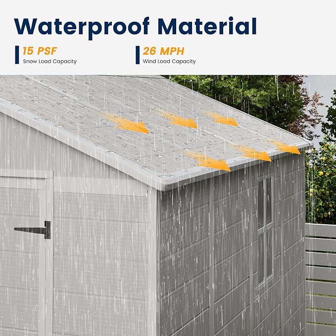 - HIGH-QUALITY MATERIAL: This outdoor storage shed is made of 12mm high-quality polypropylene resin plastic. Our resin storage shed has good characteristics such as recyclability, corrosion resistance, waterproofing, and rust prevention