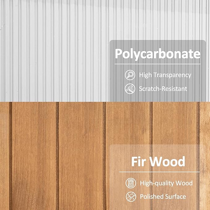 - Fir Wood: The wooden greenhouse is made of high-quality pure fir wood, and the exterior has been polished to express a rustic style. Medium brown blends easily with other décor and natural settings