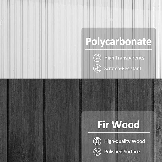 - Fir Wood: The wooden greenhouse is made of high-quality pure fir wood, and the exterior has been polished to express a rustic style. Medium brown blends easily with other décor and natural settings