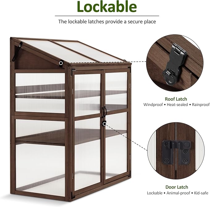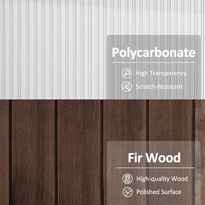- Fir Wood: The wooden greenhouse is made of high-quality pure fir wood, and the exterior has been polished to express a rustic style. Medium brown blends easily with other décor and natural settings