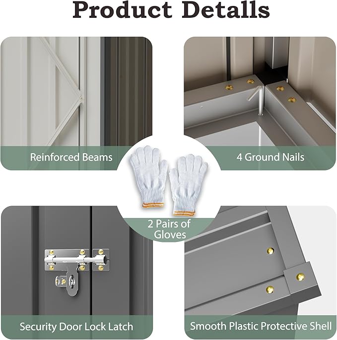 - Reinforced 0.25mm Thick Steel Panels: Unlike most sheds on the market with only 0.2mm panels, this shed uses strong 0.25mm galvanized steel sheets strong for added strength and durability. The thicker construction provides a sturdier structure that stands up better to daily use and outdoor conditions.