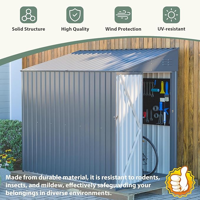 - Space-Saving Lean-to Design: The Mulinsonfly 4x7 FT lean-to shed is designed to be placed against house walls, fences, or garages, making it ideal for limited outdoor areas. Its compact footprint maximizes backyard space while still offering a generous interior for tools, equipment, and seasonal storage.