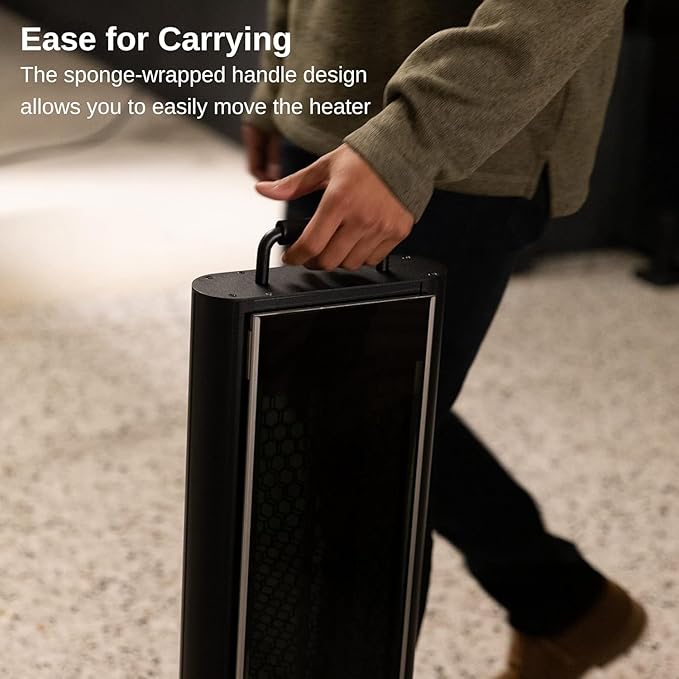 - Portable and Space-Saving-Featuring a durable handle and slim design, this heater is easy to move and fits seamlessly into any setting. Its sleek look and small footprint make it a perfect addition to patios, balconies, or indoor corners.