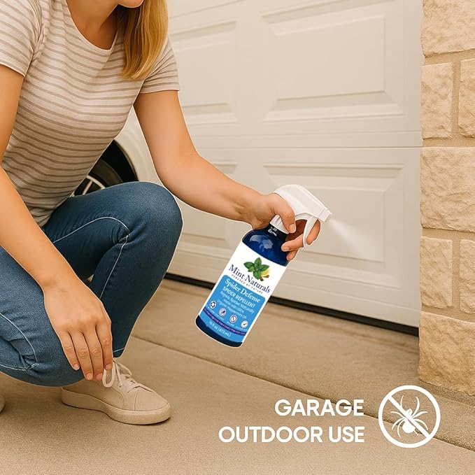 - Peppermint Oil Spider Repellent – Uses peppermint oil, a proven natural deterrent against spiders. Spray in closets, under sinks, and along entry points where spiders are most likely to hide or enter.