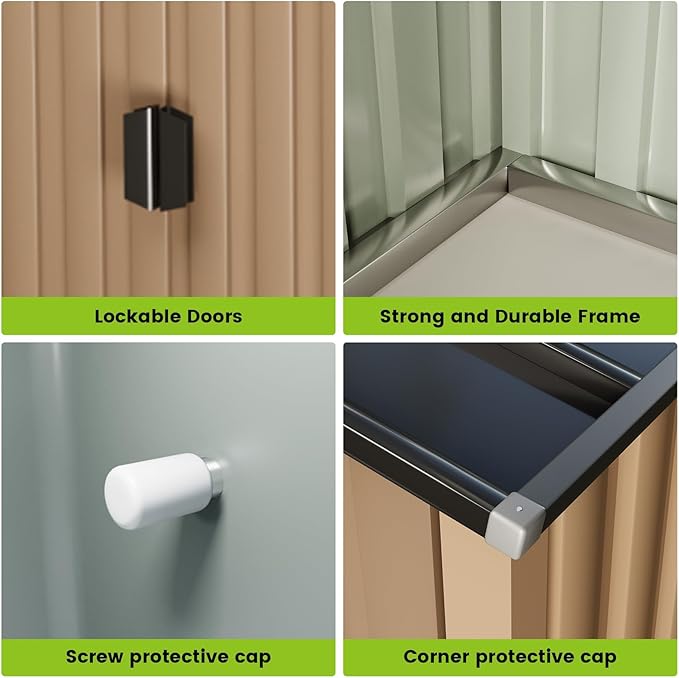 - 【QUICK ASSEMBLY OUTDOOR SHEDS】 : Includes clear instructions and labeled parts for easy setup. Wear gloves during assembly to preserve the storage shed’s finish. Team installation recommended for swift backyard or patio outdoor storage transformation.