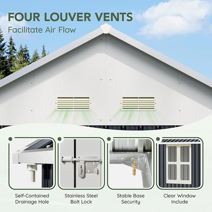 - Durable All-Steel Construction – Made with heavy-duty galvanized steel panels that resist rust, corrosion, and harsh weather conditions for long-lasting performance.