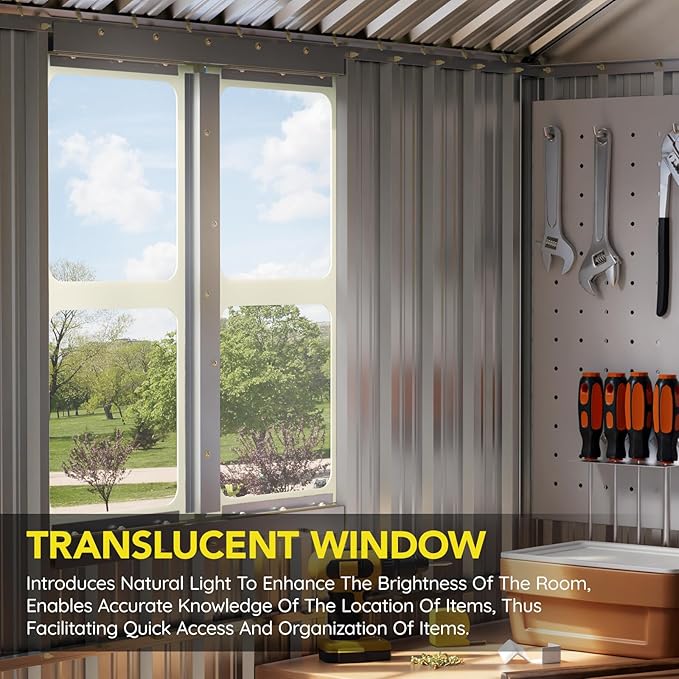 - Spacious 8x10 Storage Capacity – Provides ample room to store lawn mowers, bikes, garden tools, outdoor furniture, and seasonal items, keeping your backyard organized and clutter-free.