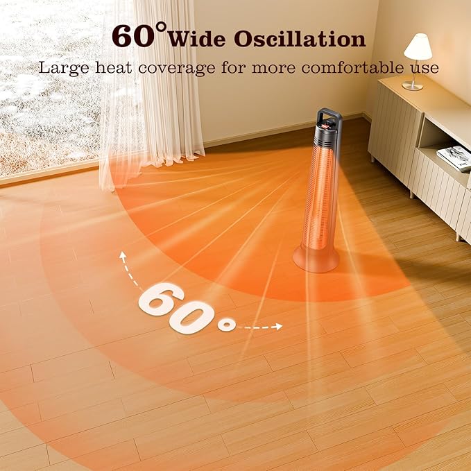 - 【60° Wide Oscillation】Enjoy broad, even warmth with 60° wide-angle oscillation that distributes heat throughout the room—perfect for living rooms, offices, and other gathering spaces. No more cold spots!