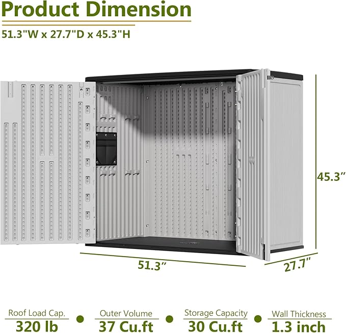 - 【Stylish Decor】 The simple and fashionable designs makes our storage shed popular.Not only does it ensure practicability, but it also ensures beauty. Wherever used in outside or inside,it could be a stylish decor. Add more fun in life.