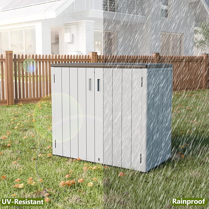 - 【Weather Resistant】This outdoor storage cabinet is made of double-layer resin sheet which is treated with blow molding technology to provide stronger wind and impact resistance, not easy to bend or puncture, the resin material is highly weather resistant, it can be used in all-weather and it is also easy to clean and maintain, suitable for outdoor use all year round.