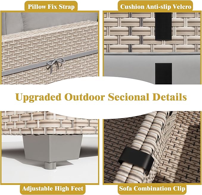 7 Pieces Patio Furniture Set, Outdoor Sectional Wicker Sofa with Thick Cushions and Storage Coffee Table, Rattan Patio Conversation Sets for Deck Yard Poolside, Grey