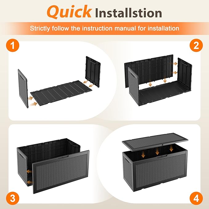 - Quick Installation:Doubling as a comfortable bench seat, This pool box Innovative design allows you to assemble it without additional tools, it only takes about 15 minutes to build it easily, convenient and efficient, suitable for storing patio furniture cushions, gardening tools, pool accessories