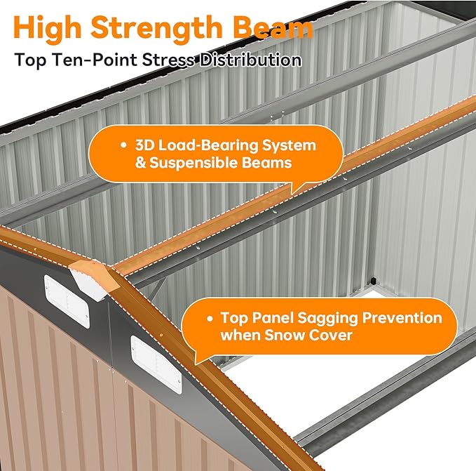 - 【Superior Material & Robust Structure】Engineered with heavy-duty galvanized steel panels and a rigorously tested structural design, this outdoor storage shed offers exceptional durability and load-bearing performance. It stands strong against harsh weather, resists rust, and offers UV protection. The reinforced frame and anti-pressure panels ensure your shed remains sturdy through seasons of use.