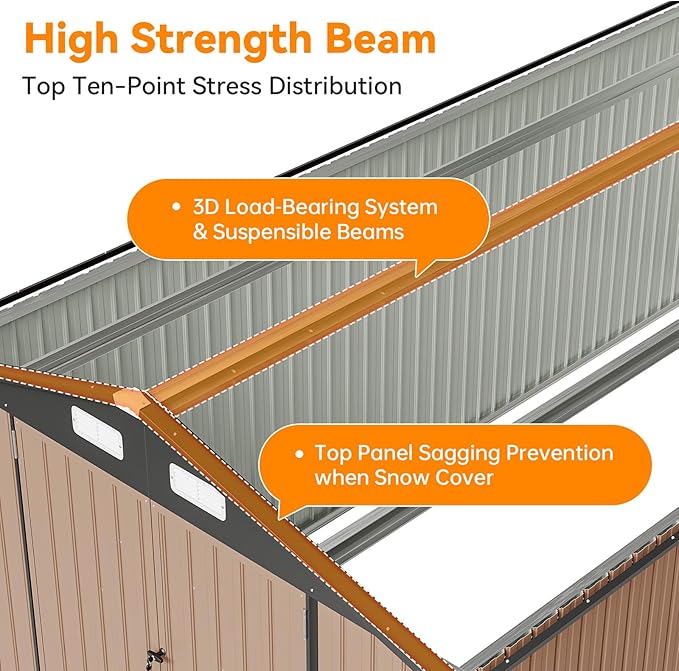 - 【Superior Material & Robust Structure】Engineered with heavy-duty galvanized steel panels and a rigorously tested structural design, this outdoor storage shed offers exceptional durability and load-bearing performance. It stands strong against harsh weather, resists rust, and offers UV protection. The reinforced frame and anti-pressure panels ensure your shed remains sturdy through seasons of use.