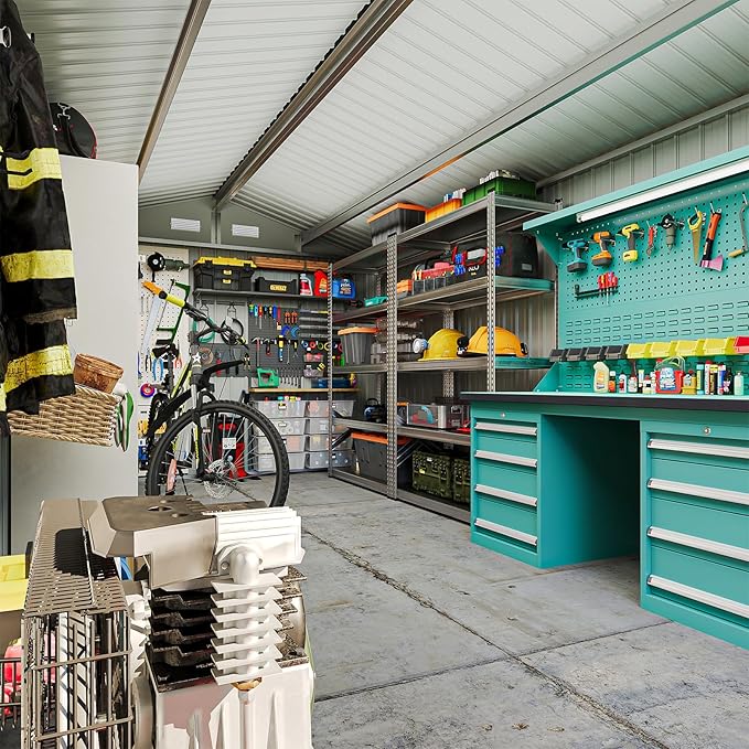 - 【Ideal Outdoor Storage Solution】Perfect for storing gardening tools, bicycles, generators, patio furniture, and more, this shed helps declutter your yard while maximizing outdoor storage efficiency. Its sleek functional design blends seamlessly into backyards, gardens, or patios. Create a tidy, organized space with this high-capacity metal storage shed built to last.