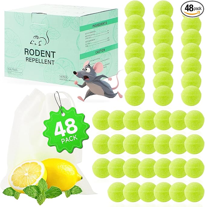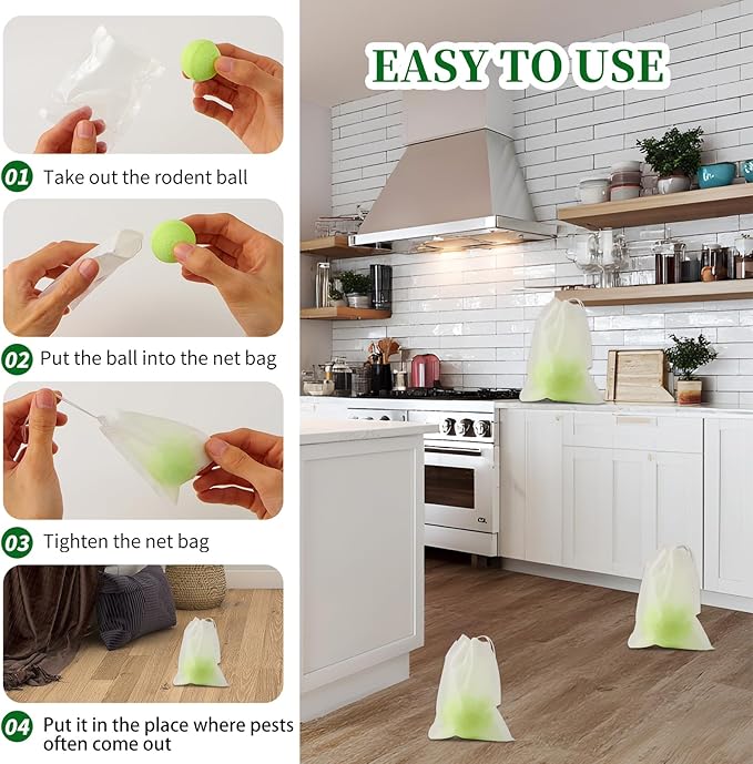 - 【Effective & Powerful】Our mouse repellent is made of super strong essential oils, they can release scent for up to 30 days, the effective area of mouse deterrent balls cover up to 120 sq. ft. Effectively repels Mouse, Roach, Rodent, Mice, Rats, Spider, Ant, other rodents and pests