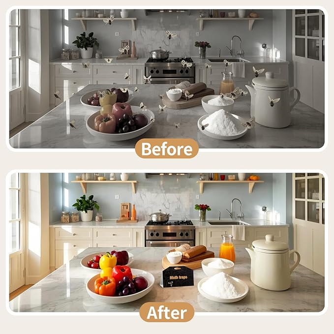 - 【Easy to Use and Long-Lasting Protection】Simply place the Moth Traps in your kitchen or anywhere there are moths. Each Moth Traps can provide 8-12 weeks of effective kitchen moth prevention.
