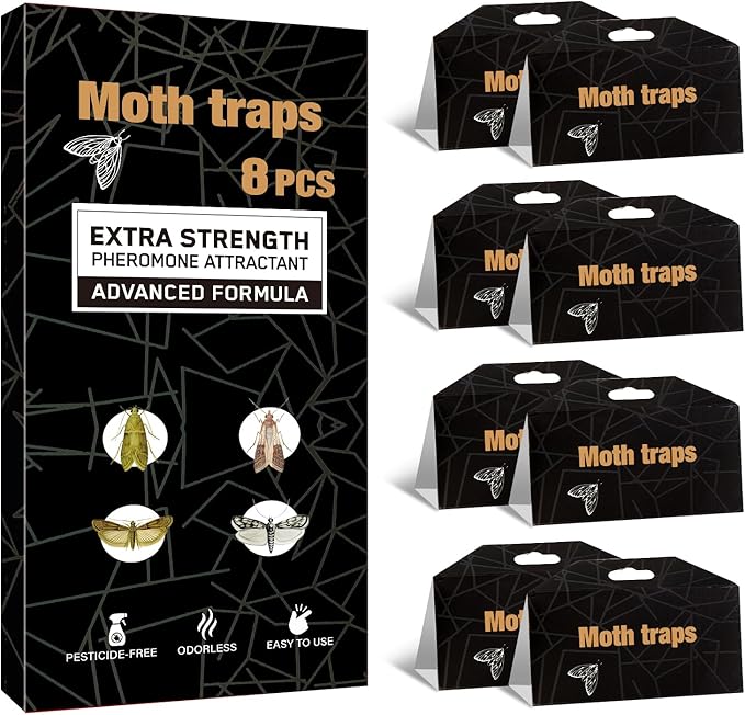 Upgraded Moth Traps, Double Potent Pantry & Clothes Traps with Pheromones Prime, No Toxic & Odorless Meal Moth Trap, Organic Sticky Moths Balls Repellent with Lure for Closet, Kitchens -8Pack