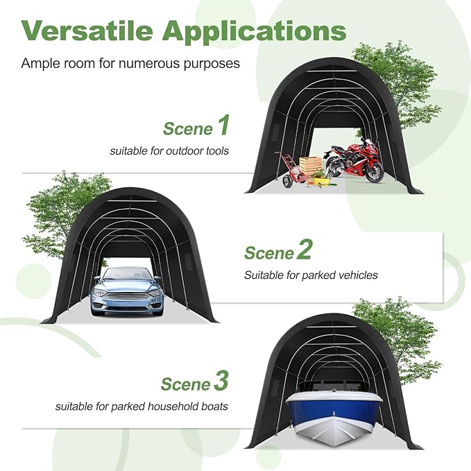 - ✅ 【Versatile Usage】 Portable garage 10x20 heavy duty is widely used, suitable for vehicle protection, outdoor activities, storage, workspace, as well as camping and outdoor adventures, meeting your diverse needs.