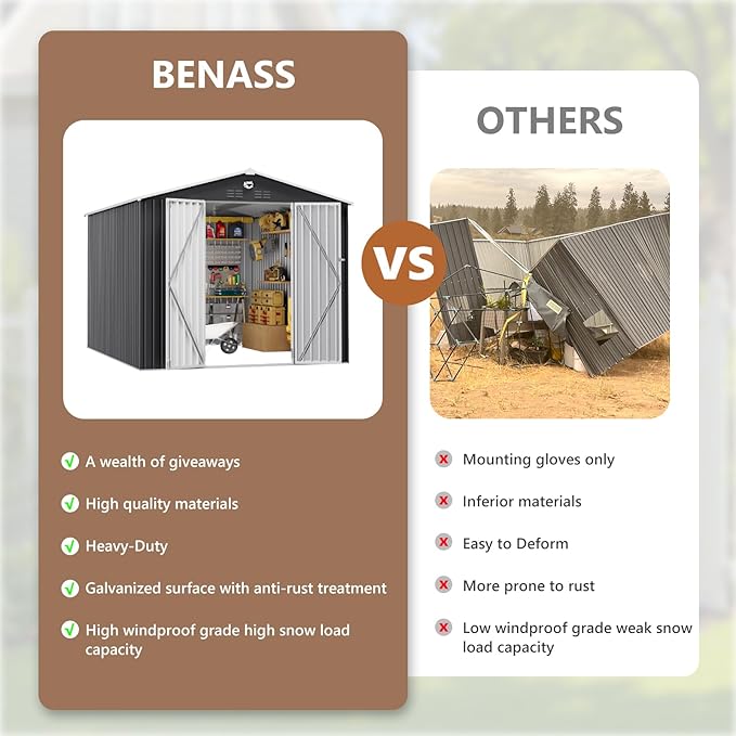 - 【Easy Assembly & Customer Support】:The tool shed includes clearly labeled components, detailed assembly instructions, and protective gloves to ensure an efficient setup. Assembly by 2-4 adults is recommended. For any questions or assistance during assembly or usage, please reach out directly to our friendly customer support team.