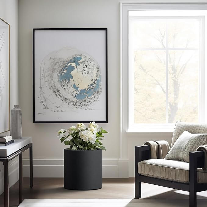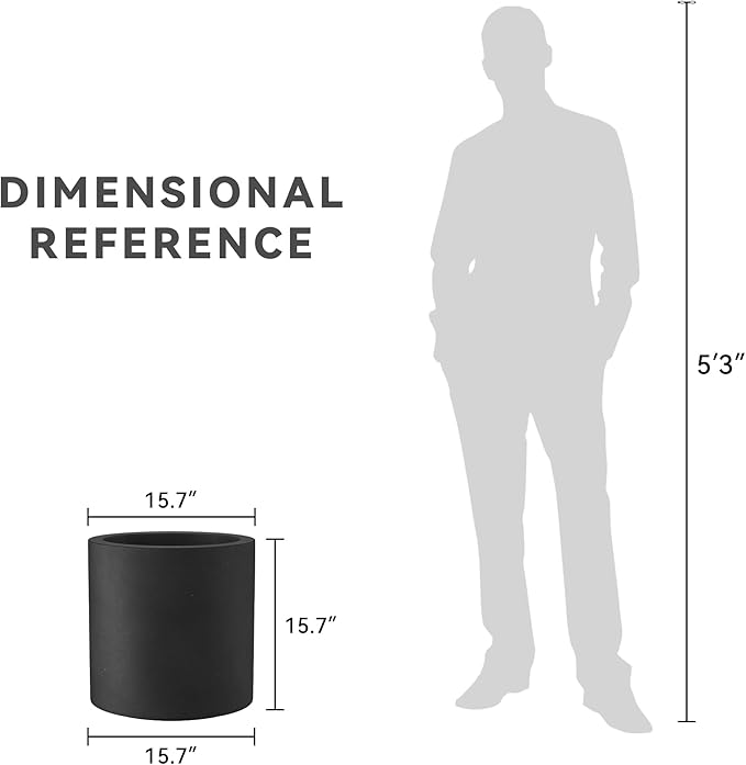 Kante 15.7" Dia Round Concrete Planter, Modern Style Large Cylindrical Plant Pot with Drainage Hole and Rubber Plug for Indoor Outdoor Patio, Burnished Black