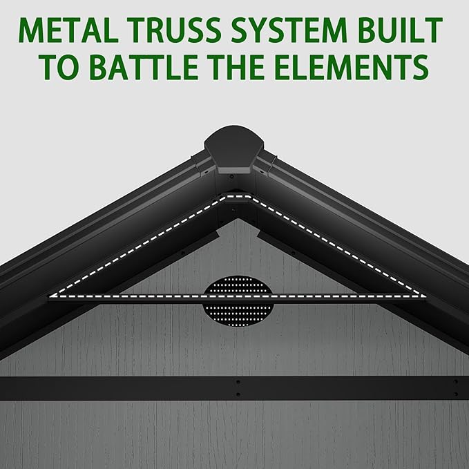 - Robust Double-Layer Floor : The double-layer resin floor provides strong support for heavy machinery and resists abrasion. This ensures your tools and lawn equipment remain protected and the shed stays stable on level grounds.